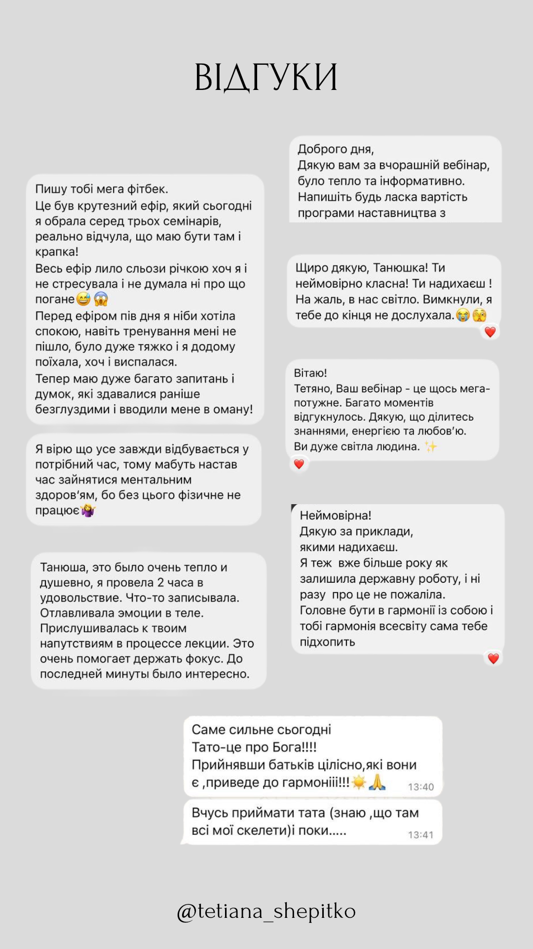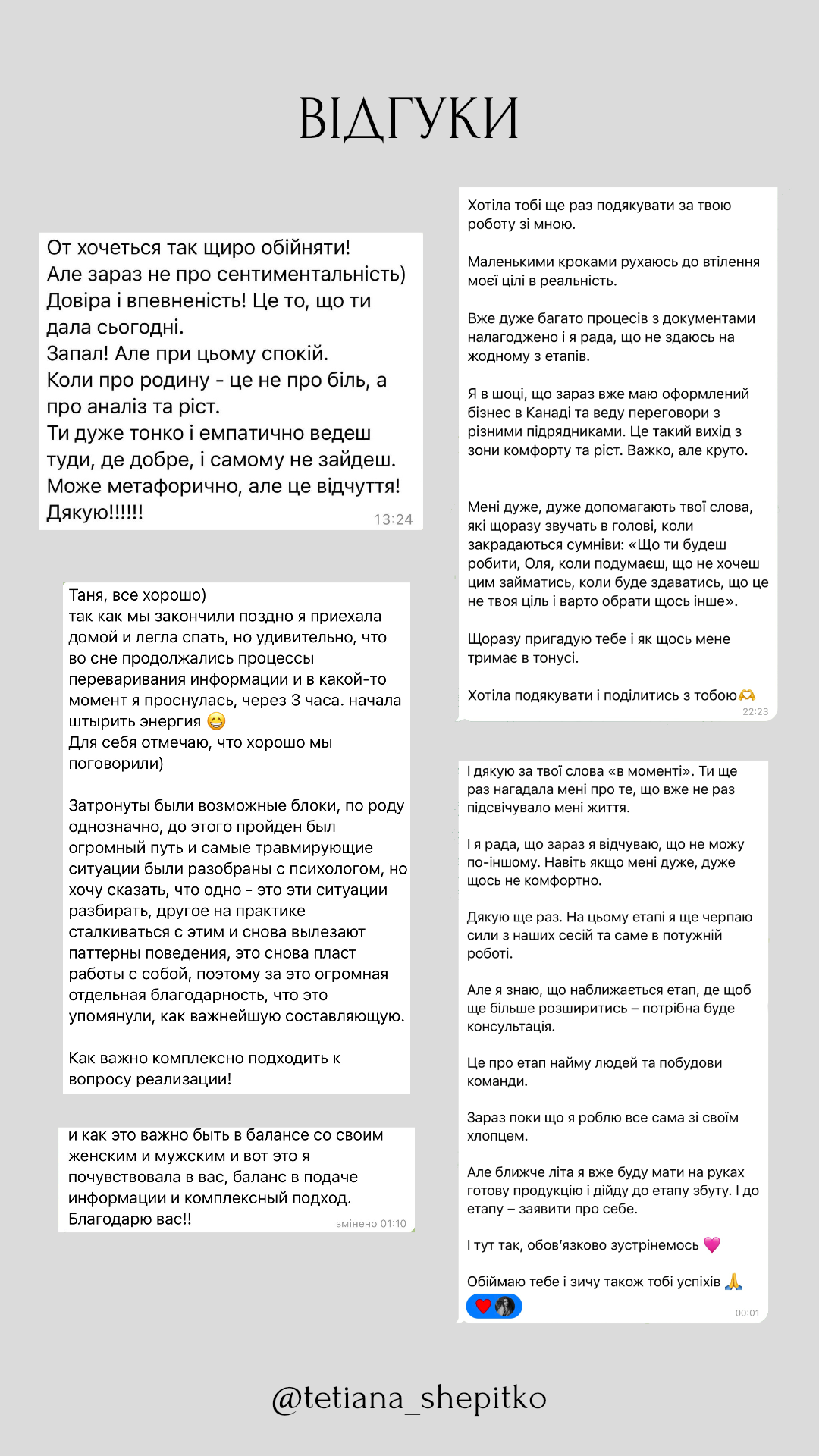 ВІДГУКИ ПІСЛЯ РОБОТИ ЗІ МНОЮ